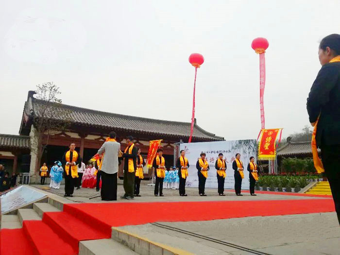 當天上午10時,現(xiàn)場頸批黃色綢帛的祭拜隊伍,聚集在杜甫故里詩圣堂前。震撼悠揚的古樂響徹行云。在敬獻花籃、誦讀祭文等環(huán)節(jié)后,祭拜者紛紛凈手、上香,向杜甫像三鞠躬,以表達對詩圣的深深敬意。