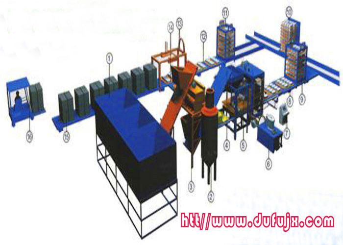 1、設計合理,采用自動接送板系統,送料分料、強制布料系統,壓頭同步和模框同步系統,可自動循環生產,生產效率高,出磚量大,制品質量穩定。